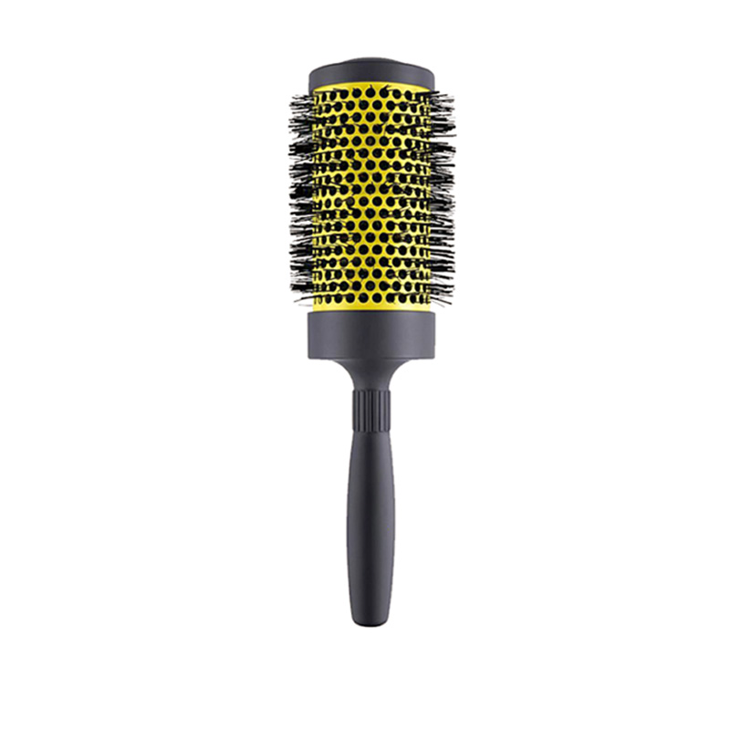 ด้านขวา แปรงบาร์เรล ขนาดขึ้นอยู่กับความยาวของเส้นผมและผลลัพธ์ที่คุณต้องการ: ใช้กระบอกเล็ก (¾"–1") สำหรับผมสั้นหรือลอนผมแน่น, กระบอกขนาดกลาง (1"–1½") สำหรับผมยาวปานกลางและเป็นลอน...